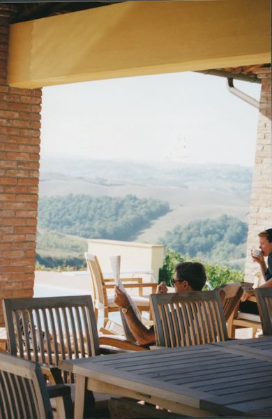 Here’s a shot from another of the villas in Fattoria Santo Stefano that we rented, called Vignola. Also a very groovy big converted farmhouse and highly recommend it as well. It was just a short walk down the road, on its own hilltop. I think it could fit up to 27 people or so, with little apartments carved out of a big old farm building, furnished perfectly.