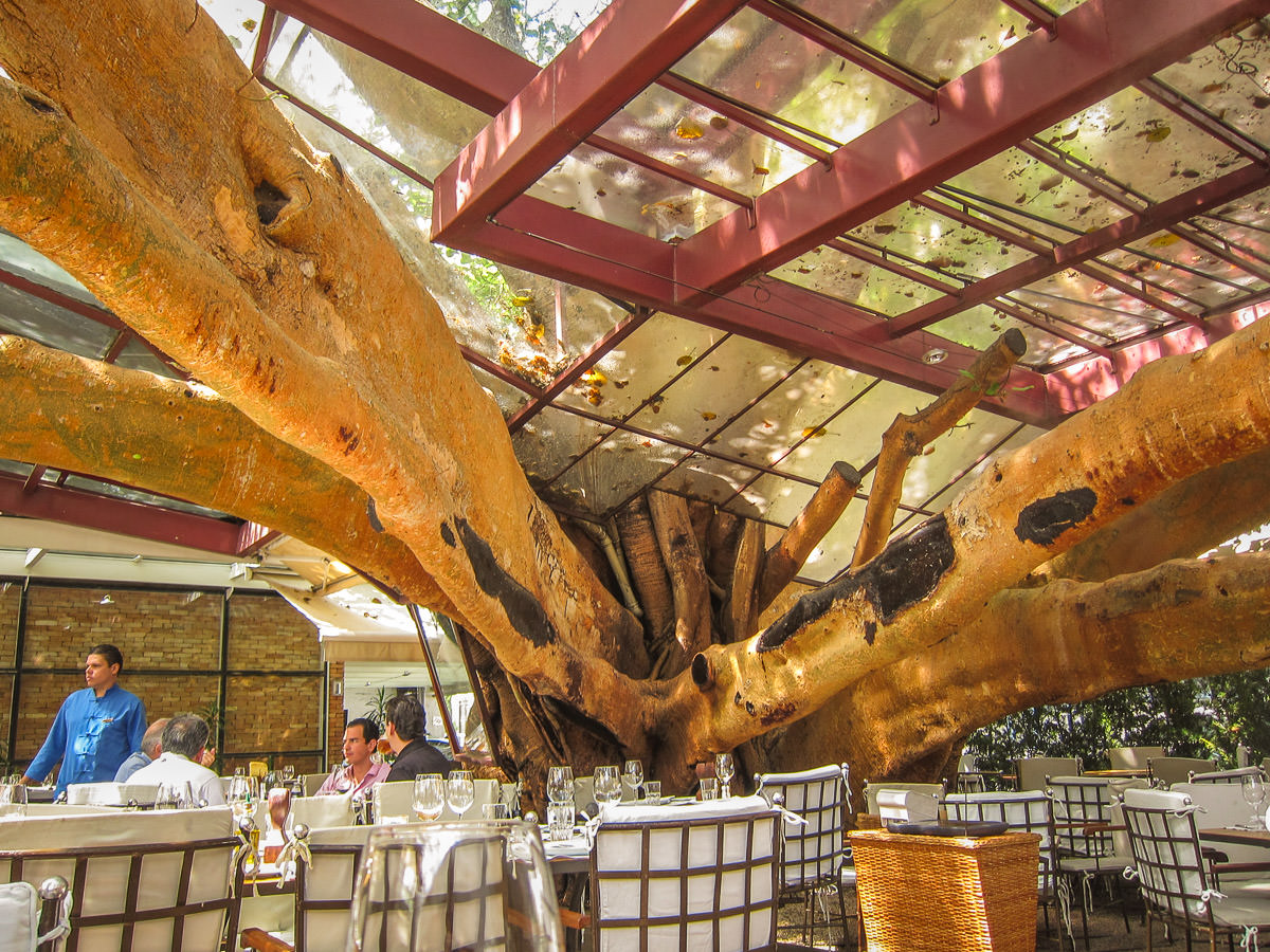 Nicely tucked into the leafy Jardins neighborhood is the famous restaurant Figueira Rubaiyat, an outdoor restaurant set under about the biggest tree I’ve ever seen — a 200 year old banyan tree planted in the 1890s