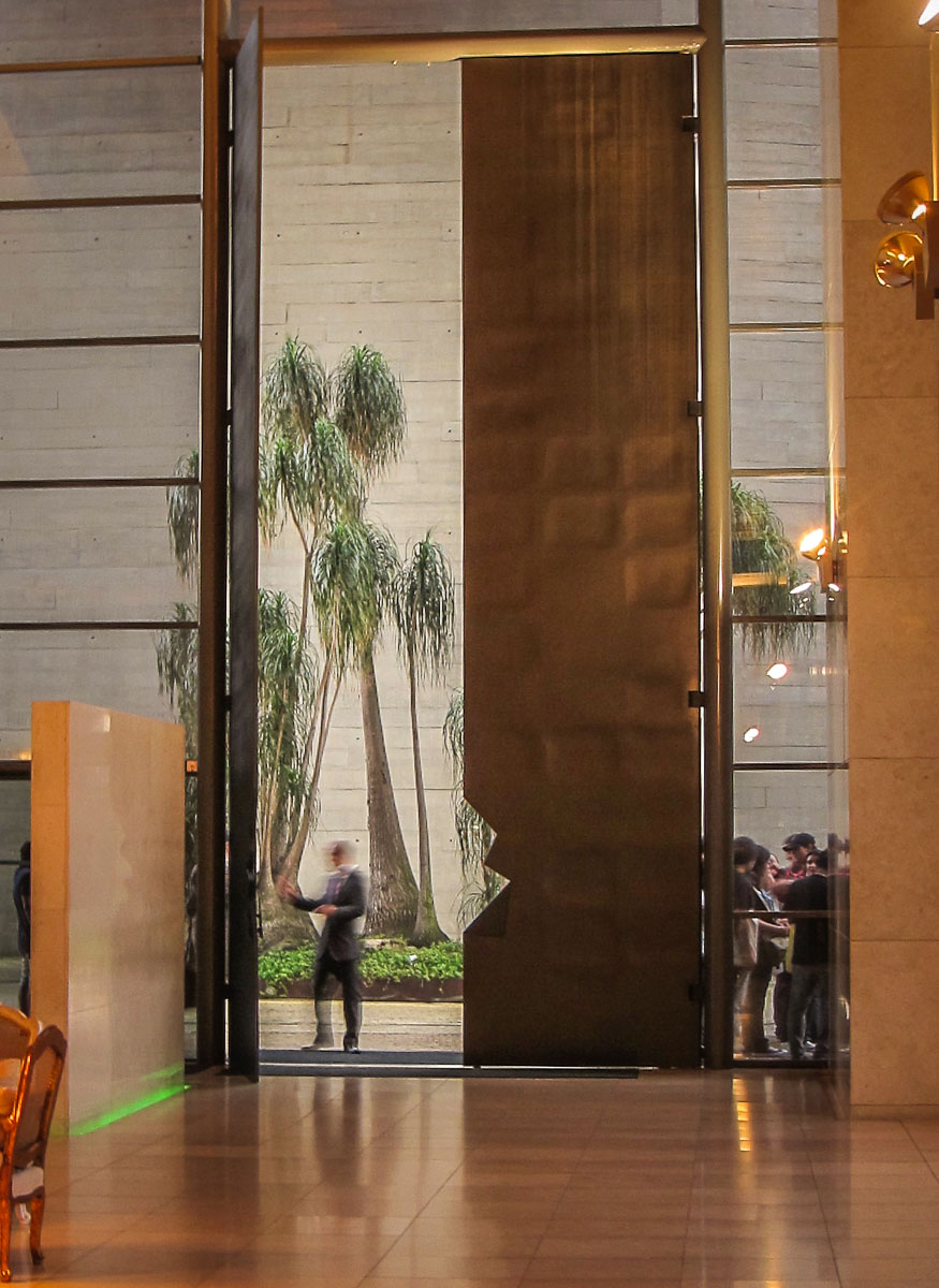Catching all the buzz in design circles, my excellent SP guide John took me by to see the boat/watermelon-shaped Hotel Unique. It really is a stunning place, designed by Ruy Ohtake, the lobby bar being my favorite, with a towering, cantilevered bottle display that rises several stories. There’s a rooftop bar and restaurant where you can look out over Sao Paulo’s 20 million residents. Stop by for drink.