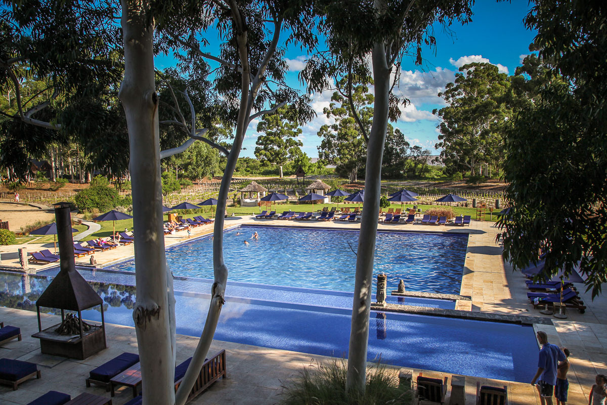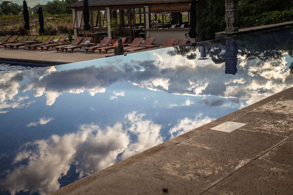 The resort’s giant pools act like great mirrors, doubling the dreamy effect.