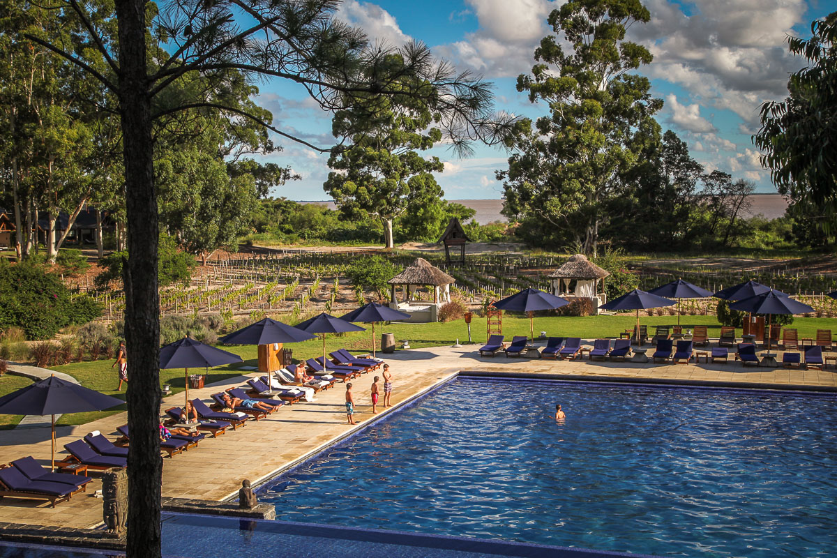 [CARMELO, URUGUAY] — I’m not a huge fan of hotel chains for international trips — I prefer more unique independent hotels that reflect the character of each locale, not the same style everywhere I go. But in a pinch for a room at the last minute in Carmelo, I booked a couple of nights and pool time at the Carmelo Resort & Spa a luxury resort in the tall pines along the Rio La Pata river, about 40 mins from the colonial town of Colonia del Sacramento. It’s one of the best luxury hotels in Uruguay and consistently ranked in the Top 10 Resorts in Central and South America by Conde Nast Traveller and Travel & Leisure.