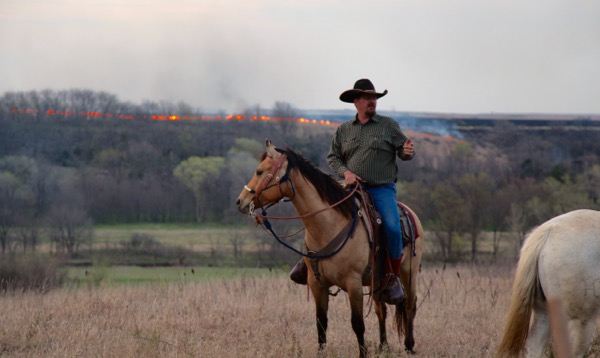 Maaan, these horses are cool. You often see “fun horses” — on trail rides, your rich friend’s hobby, pulling a carriage, in parades. You always hear about horses easily getting spooked, but these are “working horses”, they’re used to cutting cattle, snake-steppin’, bison-scootin’ and fearlessly taking on anything. The way they calmly moved in and out the flames was just so cool. Fearless. Strong. The real deal. That is the patriarch of the family, Dr Jim Hoy, a PhD, college professor, author of nine books, expert in Medieval English history, the Australian outback and a cowboy folklorist, especially about these Flint Hills.