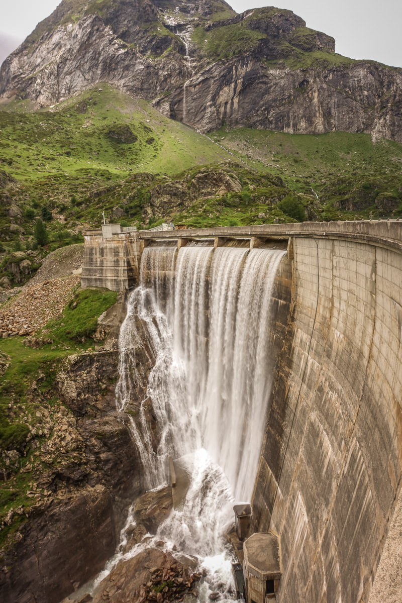 To get to the Cirque d’Estaubé you must first walk across the elegant Gloriettes dam. I’ve always been fascinated with dams ever since building them as science projects as a kid. Not sure how tall these falls are but the concrete rail at the top is about chest high, so you can do the math all the way to the bottom. This one is pretty, very skinny and deep, holding back a flat turquoise green lake. A great place for a picnic.