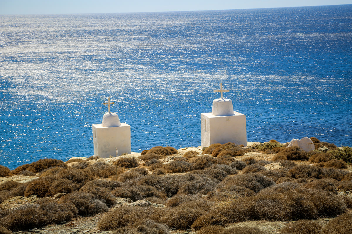 Chora is dramatically perched on the edge of a steep cliff, high above the crashing waves. It’s the exact same views as Santorini, but with a fraction of the people in your way.