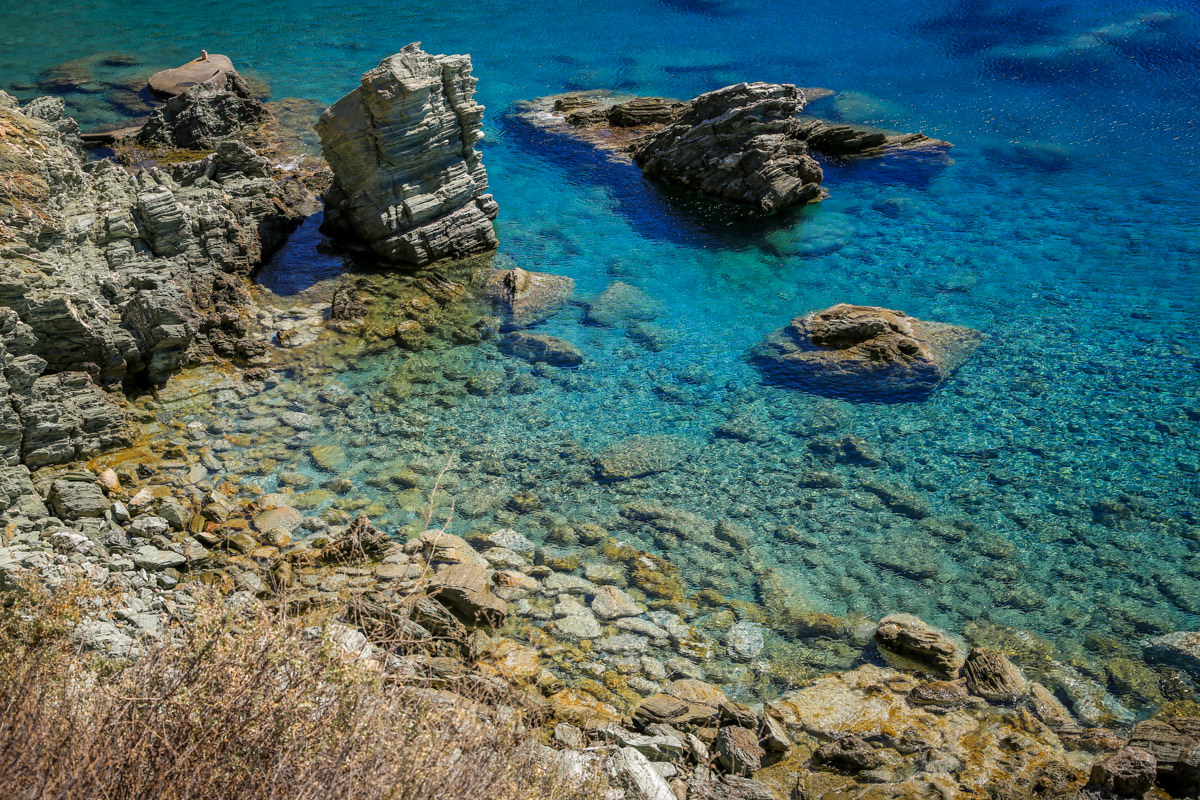 Each beach has it’s own characteristics. Some sands. Some rocky. Some bouldery. All crystal clear and lightly populated.  Some you can drive to. Some you have to hike to. Some you can only reach by boat. The wind can be intense on the island, depending on the time year, or even day.  So ask around and people will suggest which beach would be best for the winds that day.