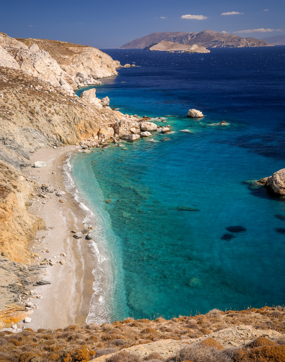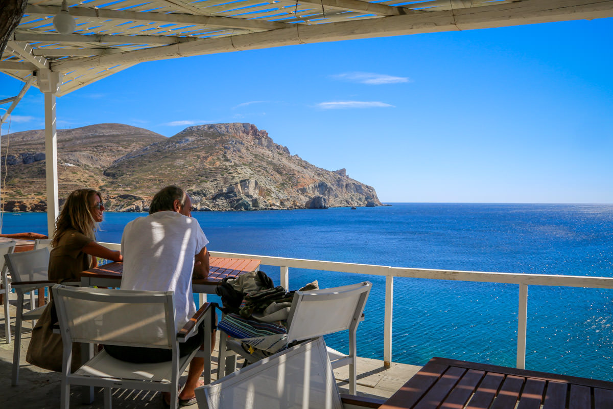 Definitely make the hike from Agkali beach to  Agios Nicholaos beach and have the perfect lunch at the stunning Papalagi restaurant overlooking the church and beach.