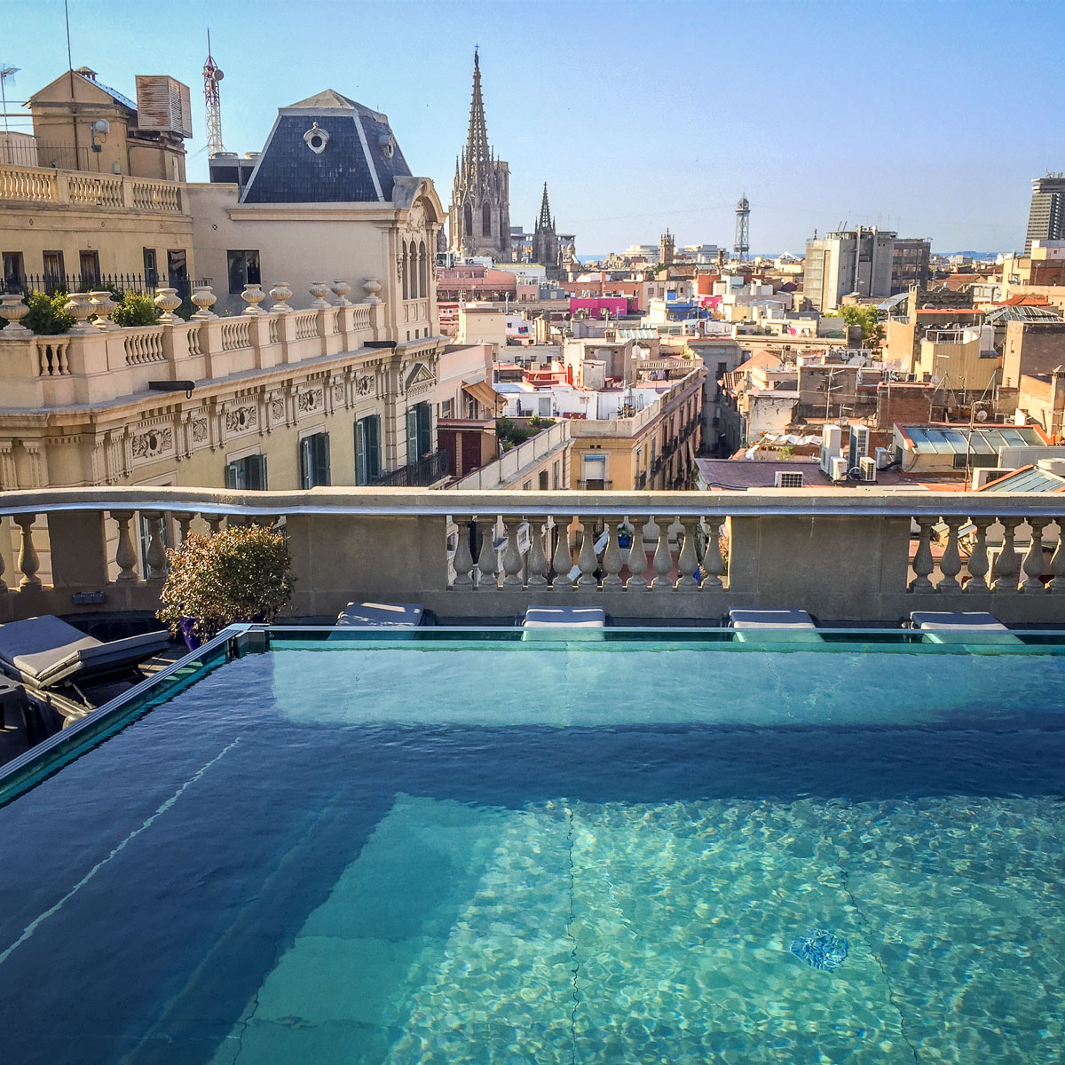 The Ohla Hotel is a groovy little sleeping platz In Barcelona, right on the edge of the Gothic Quarter. Sleek rooms, a good restaurant and an awesome pool bar on the roof, the absolute perfect Gin-Tonic Spot before going out grazing tapas around town.