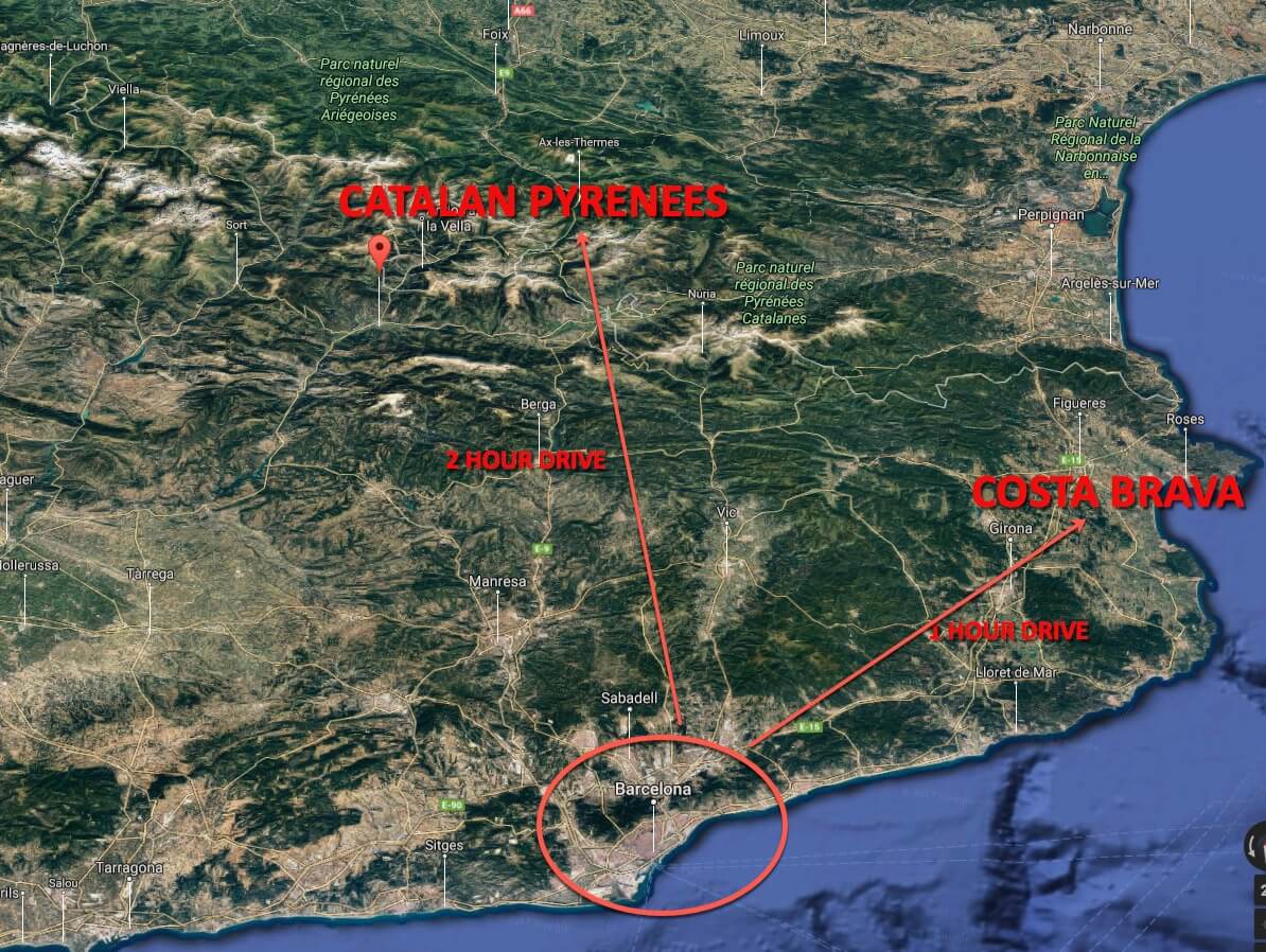 The Catalan Pyrenees are a pretty quick drive from the heart of Barcelona. About two hours. about an hour and a half from the airport.