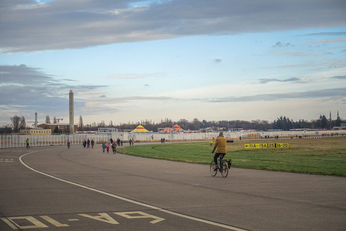When they decommissioned it, most cities would have redeveloped the massive runways and acreage into buildings and apartments. But this is Berlin and the people voted to leave it the way it was and turned it into a massive outdoor run-around place, leaving the old runways intact so people could bike, push strollers, kite-skate and fly kites. It’s a giant greenspace in the middle of the city.