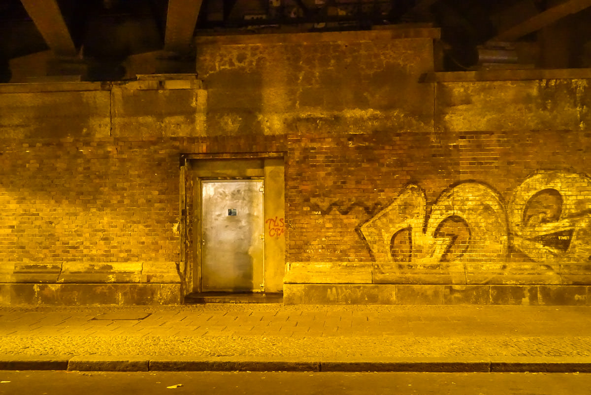 This was a super-cool surprise. Bar Tausend is hidden behind an unmarked door under the Friedrichstrasse train station, tucked under the eaves of a steel bridge. There’s no sign. Just a door with a slot in it. I had reservations, so they let me in immediately. Check out where this is located, which is half the fun: