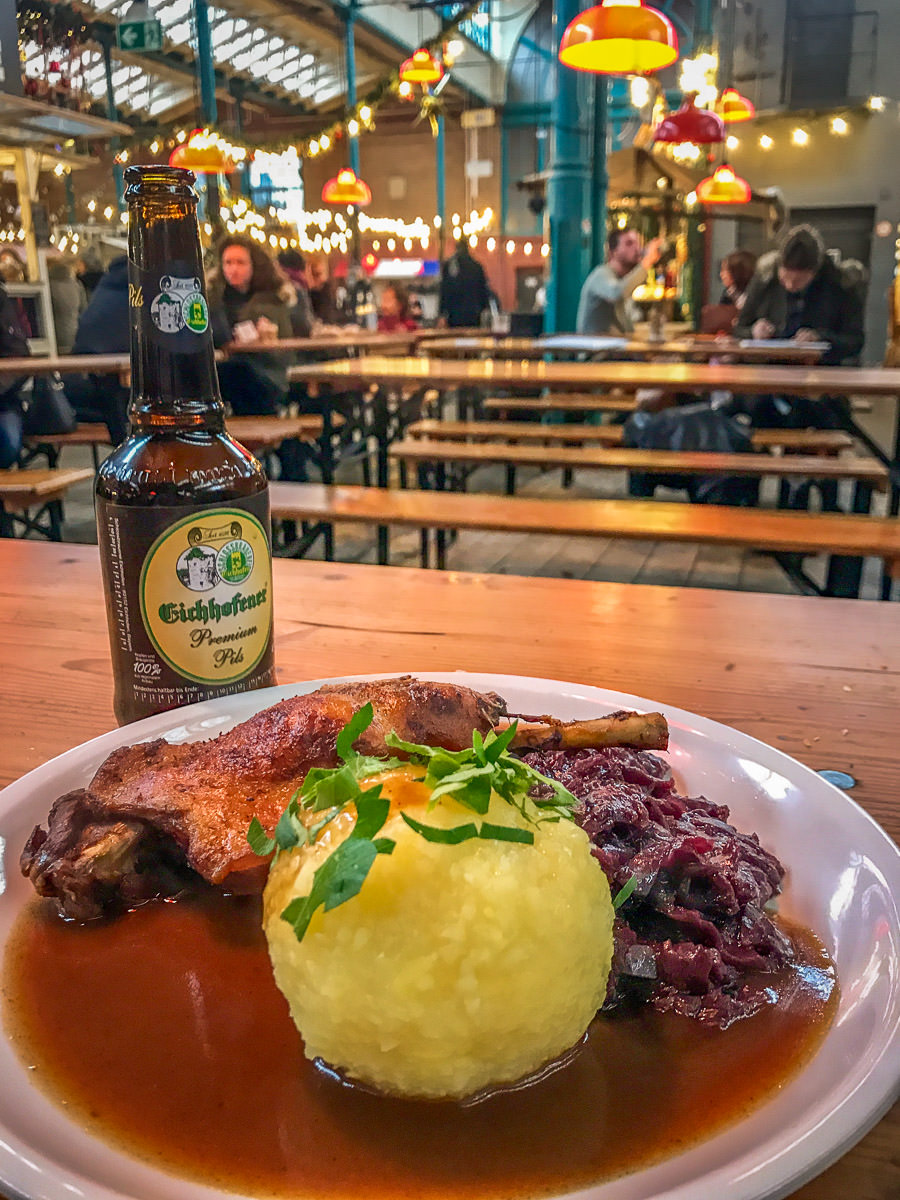 Markethalle Neun (which means Nine) is a 120 year old market in Kreuzberg that they renovated in 2011 to be a nice upscale food hall, with restaurants, bars, food stalls, coffees and atmosphere. Loved coming here for lunch on a cold day, the bright skylights warming up the cold grey day. Get the duck and cabbage!