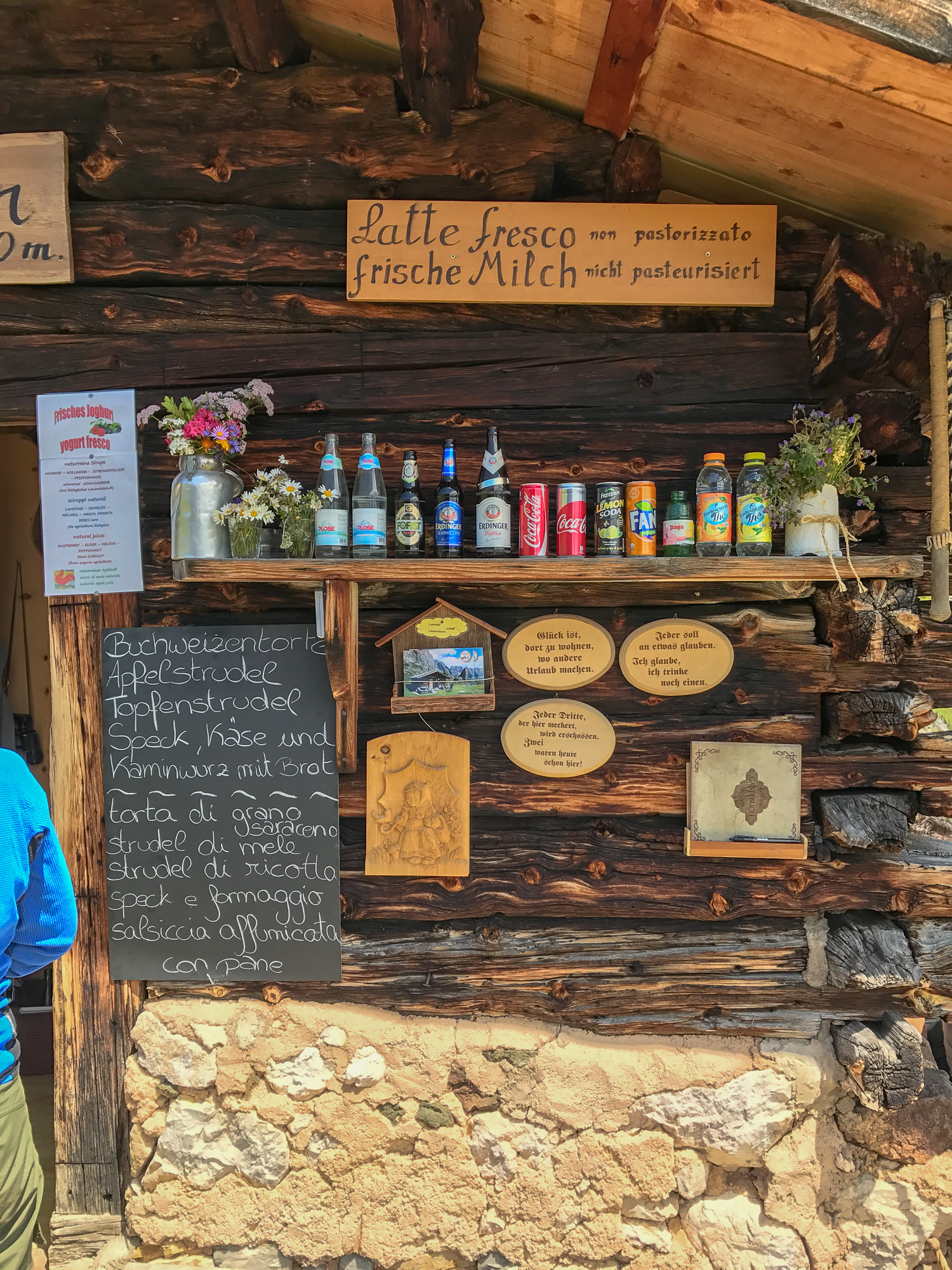 Troier Hut is a small little rifugio about a third of the way down from the top of Seceda and an easy short hike if your short on time. It´s directly down the mountain from the Seceda lift and you zigzag your way down. Great goulash and pasta and incredible views. Then, after you´re stuffed you can just walk 20 mins down to a shorter lift that´ll take you back up to the top of Seceda. Or you can continue down the mountain and take a lift down from there.