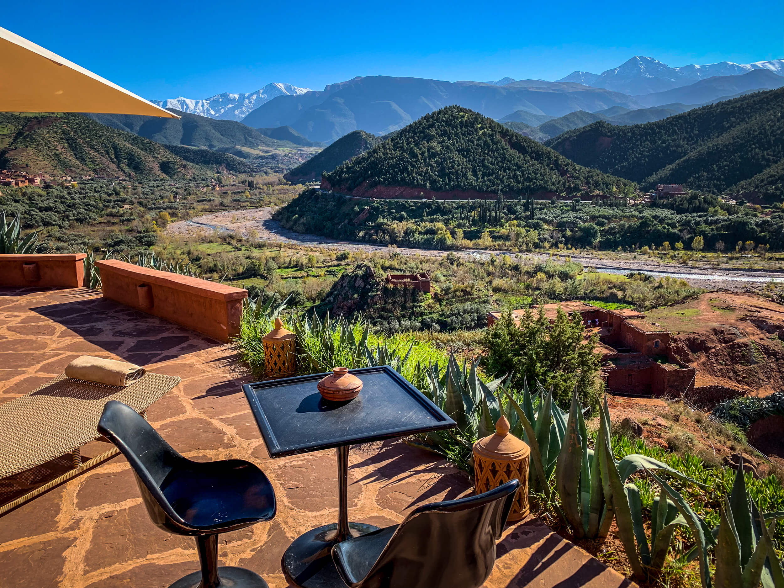 The Ourika Valley and the Atlas Mountains are less than an hour from Marrakesh. Easy to get to, even by taxi, which people regularly do, even for day trips.Here’s a great honest review from The Telegraph. Here’s the hotel’s website.