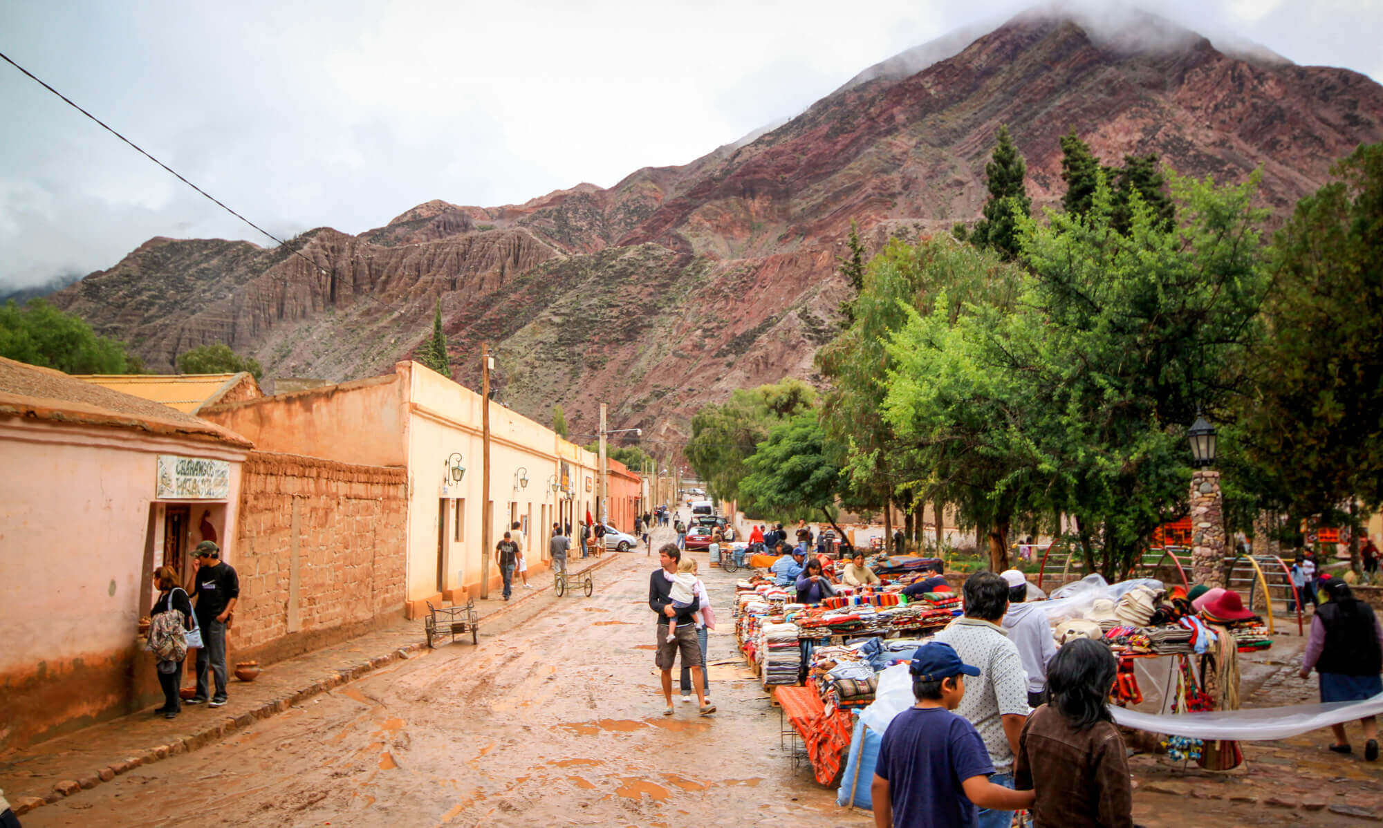 [JUJUY PROVINCE, ARGENTINA] — Northwestern Argentina is one of the most surprising and under-visited part of the country. Right on the Salta/Jujuy provincial borders are two must see stops: the muddy Andean town of Purmamarca and just around the corner, the incredible Paseo de los Colorado, a two mile amusement ride of colors that wrap around behind Purmamarca. Stop in for a lunch in town, dominated by the stratified colors of the Hill of the Seven Colors — you’ll see why they named it that.