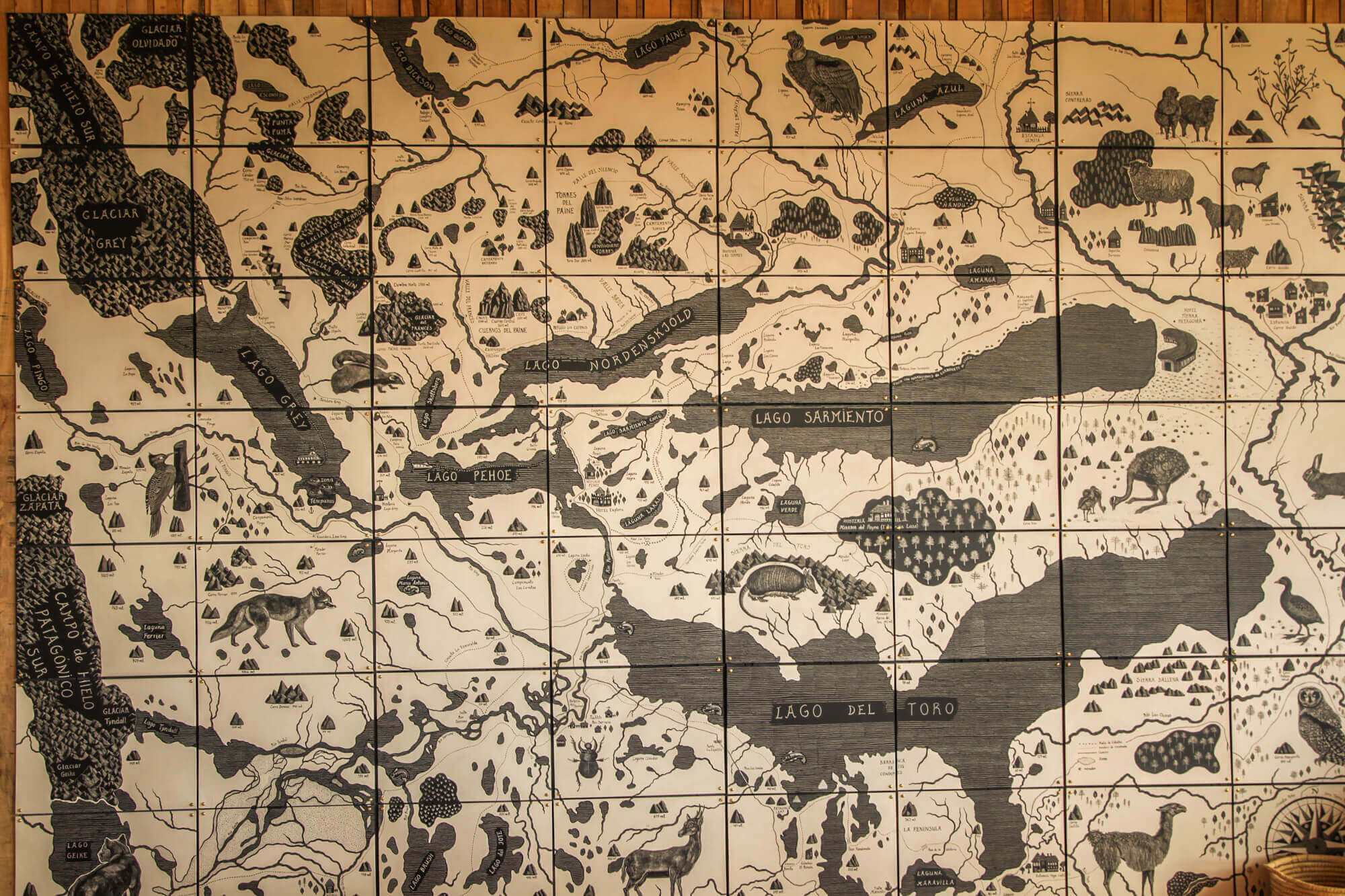 The lobby of Tierra Patagonia is centered around this huge “adventure map”, the main guide jefe greets you and asks about your interests and desire for adventure. He then makes a number of suggestions to help plan out your stay.