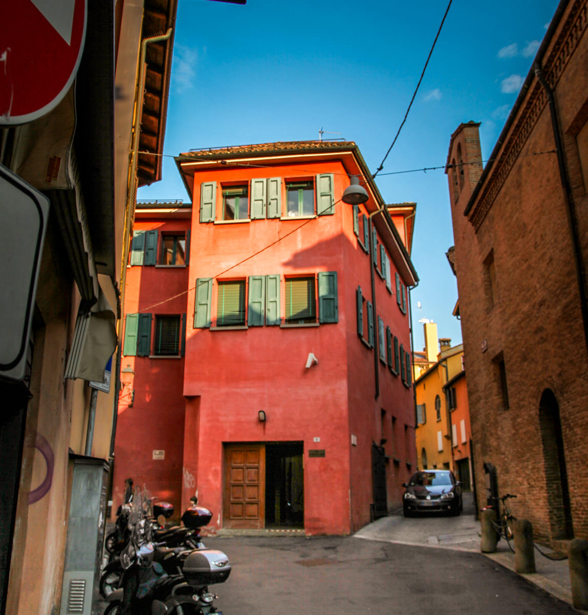 The streets are so narrow and curvy in Bologna, buildings groan for the sky, sunlight barely finds its way to the ground. It seems like they dug it into the ground vs. building ⬆️.