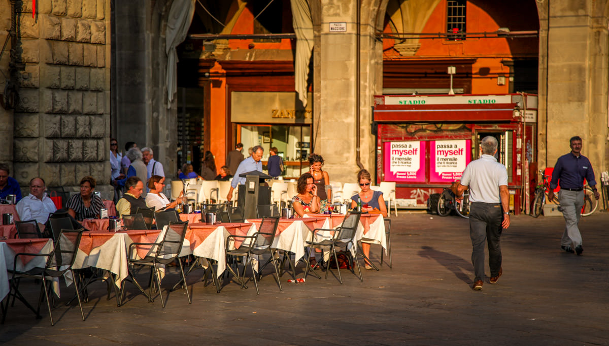 Like all great Italian cities, the piazzas are the lifeblood of the city. But because all the streets are narrow and porticos cover all the sidewalks, it’s really the only place you can get out in the sunlight — like walking out from a dark slot canyon into a wide open space, your eyes blinking. Especially in the winter shadows. Have a cappuccino or a birra and watch the world go by.