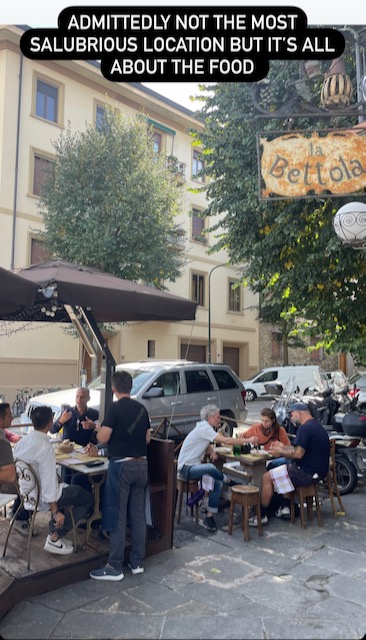 But right then, the door opened with a gaggle of loud Italian voices and music streaming out. A trim nice man holding glasses and bottle of prosecco said “Are you here for dinner? How many are you?” then promptly started passing out glasses to our group and pouring “What is your name? Don’t worry, it won’t be too long, I come find you.”