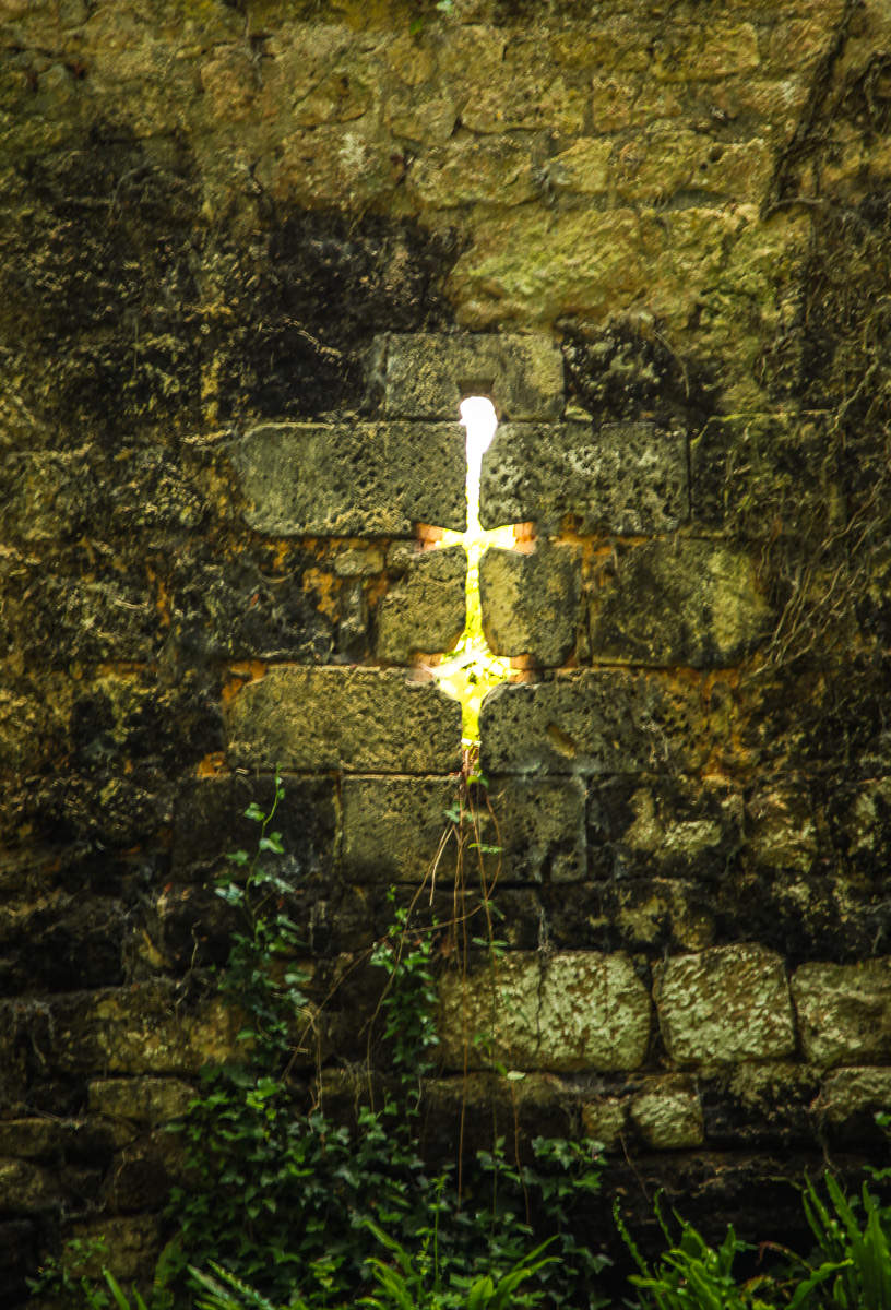 I loved this carved cross and arrow shooting position built into the rock wall.