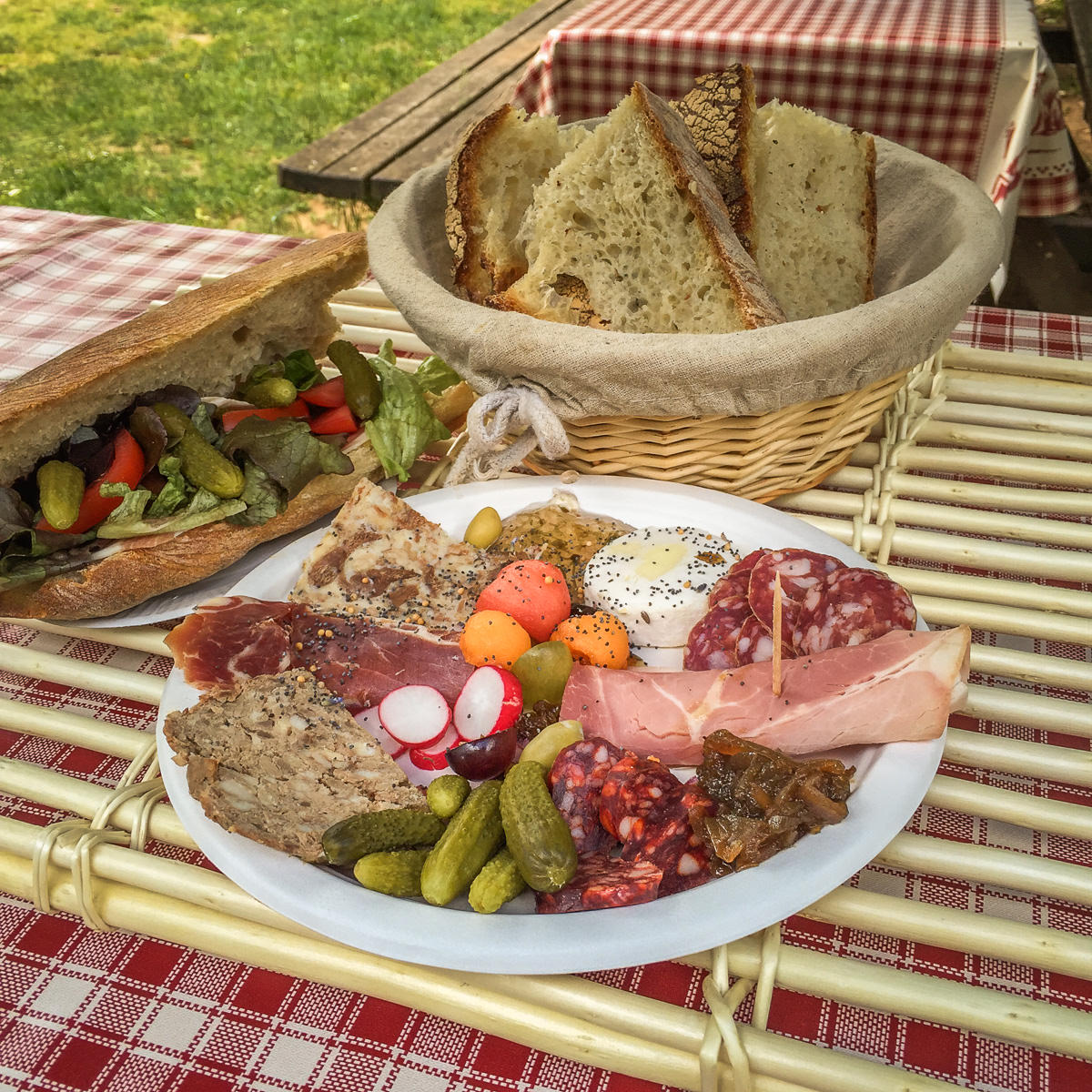 It was all so wonderful. Sitting at a picnic table eating a grilled steak, the breeze rustling the hillside of thick trees, a gorgeous chateau staring from above.