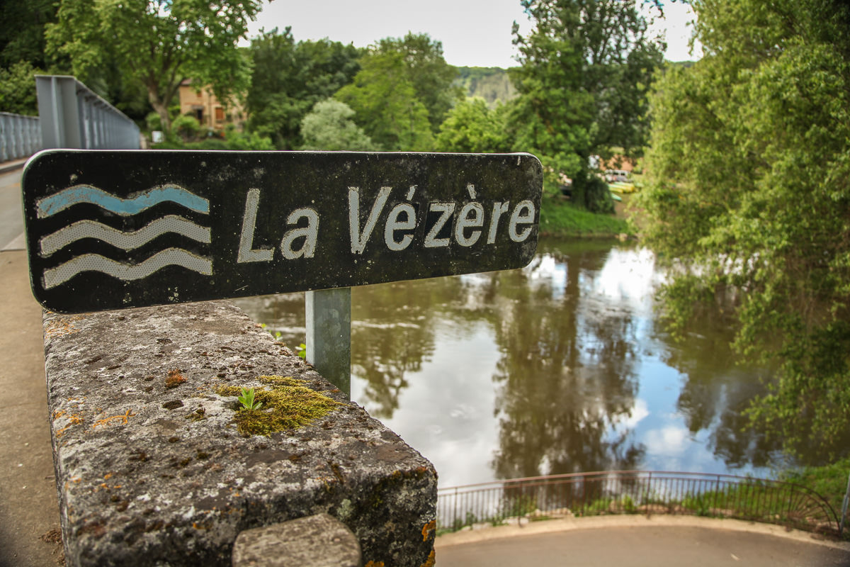The Dordogne River itself runs for nearly 500 kilometres (310 mi) from near Auvergne all the way to the coast below Bourdeaux. There are several tributaries, also clean and clear and black, that contribute their part along the way, like the Vézère I describe below, which is loaded with prehistoric cave paintings and early signs for man and is a UNESCO World Heritage Site.