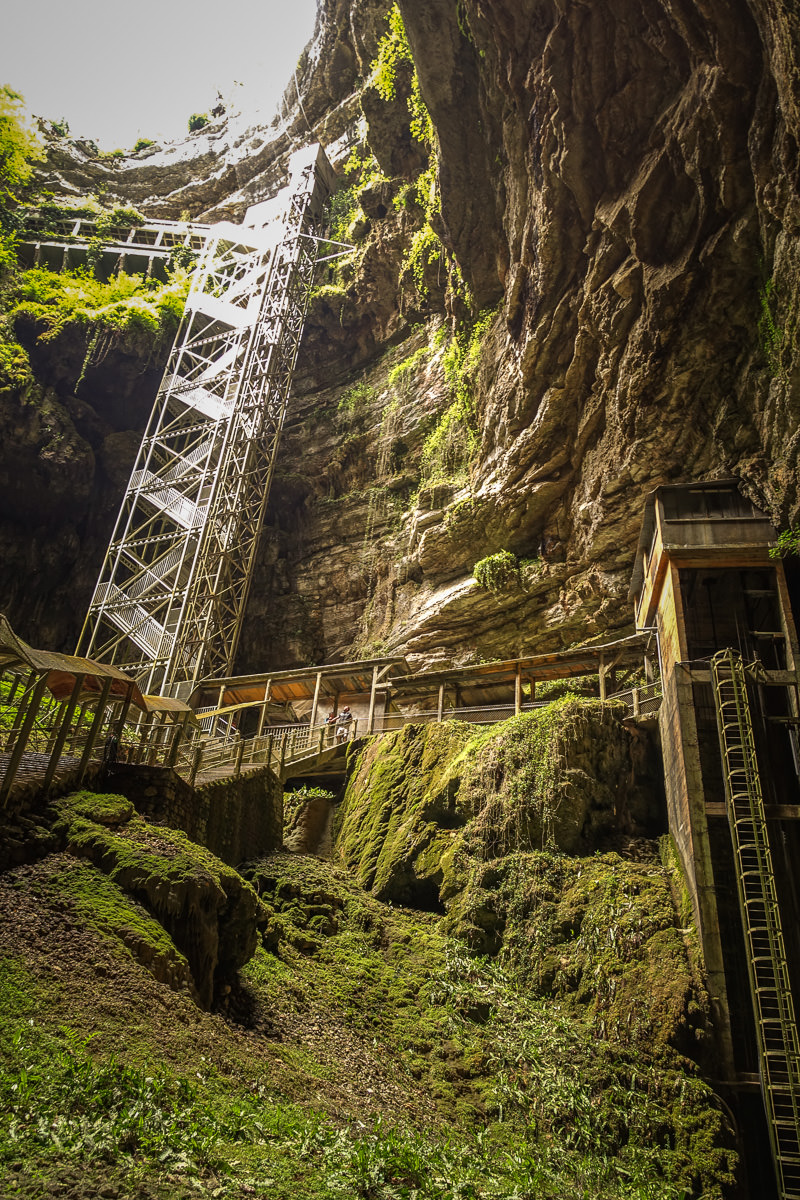 Getting down to the cave entrance is almost as good as being inside the caves at Padirac. It really was pretty cool, you take an elevator deep into the earth, then ride a boat on a river way underground. Ducking to get through some tunnels, opening up into huge caverns the size of Gare du Nord in the next.