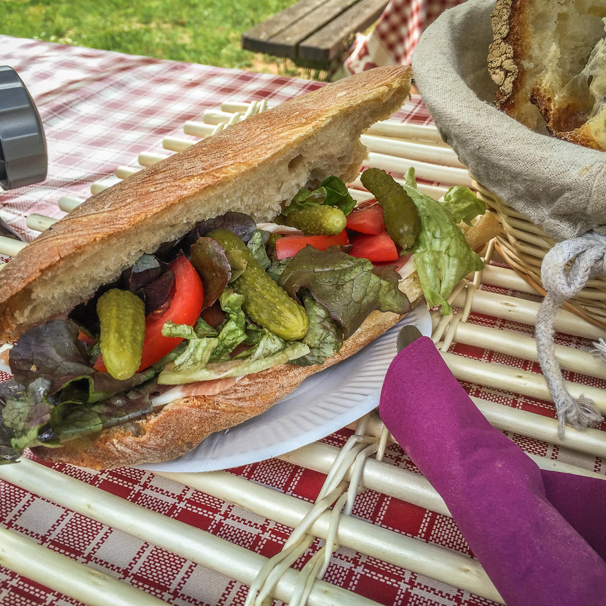 This was one of my favorite experiences in all of France. And the most unplanned. Sitting there having the most gorgeous takeway lunch on a picnic table, willows weeping beside me. A beautiful village behind, and the luscious, slow-moving Vézère River gracefully passing by, singsong French chatter from other smiling diners down the banks. Silent canoes glide by, a kayaker guiding a silent swimmer.