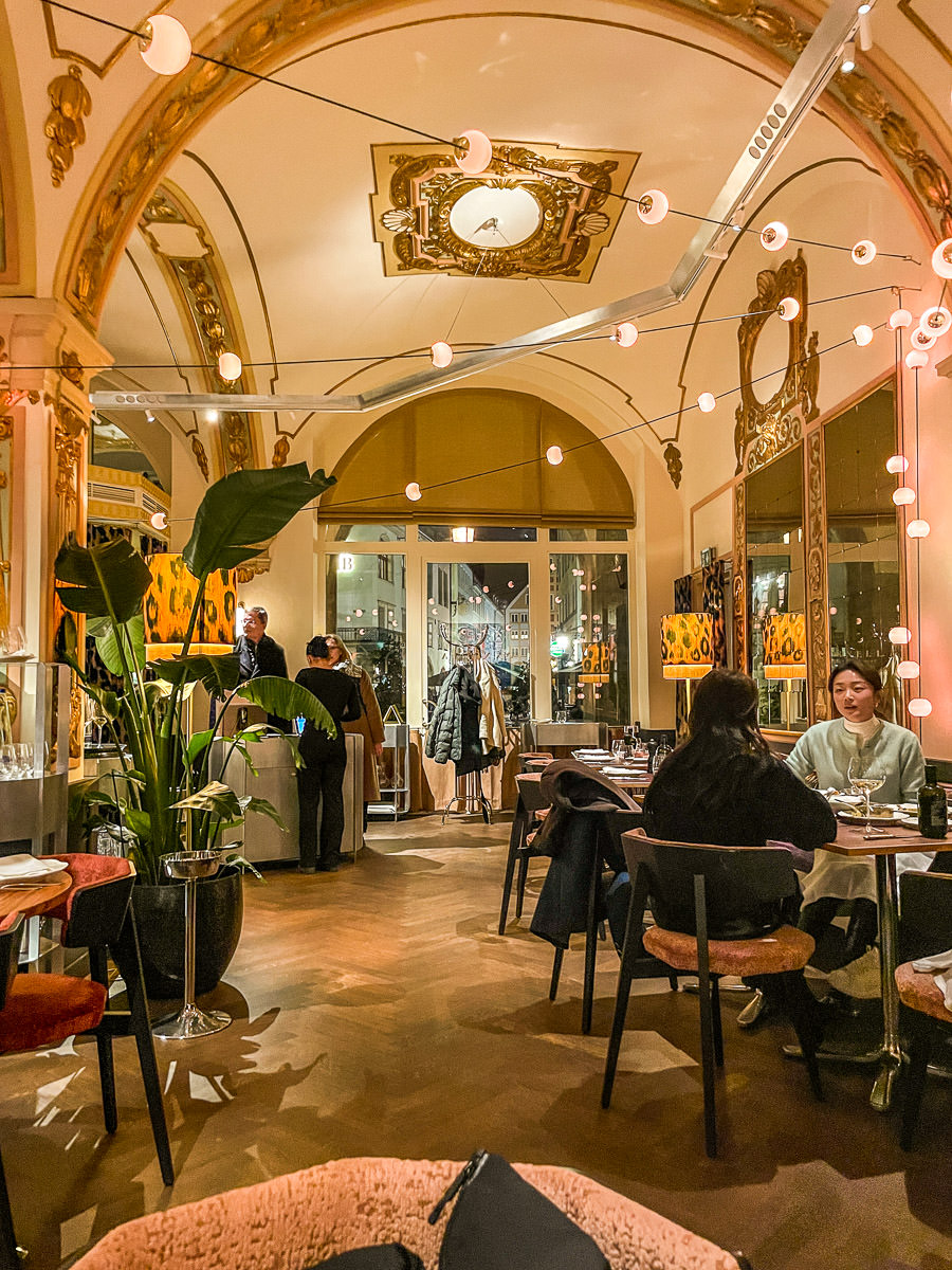 Ornella is a beautiful restaurant on a postcard-perfect small square not far from Marienplatz. Tucked under big stone arches with a cool mix of modern and classic decor. And specializing in northern Italian food.