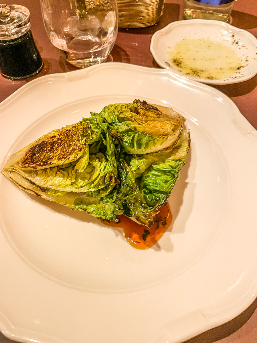 It’s crazy, looking at review pics online it looked like one place, then I’d see another and it looked completely different. Looks like they flipped it from rom dark browns to this super mod look now with wallpaper that looks like my mom’s 70s scarves. Loved it so much. My best meal of the week.