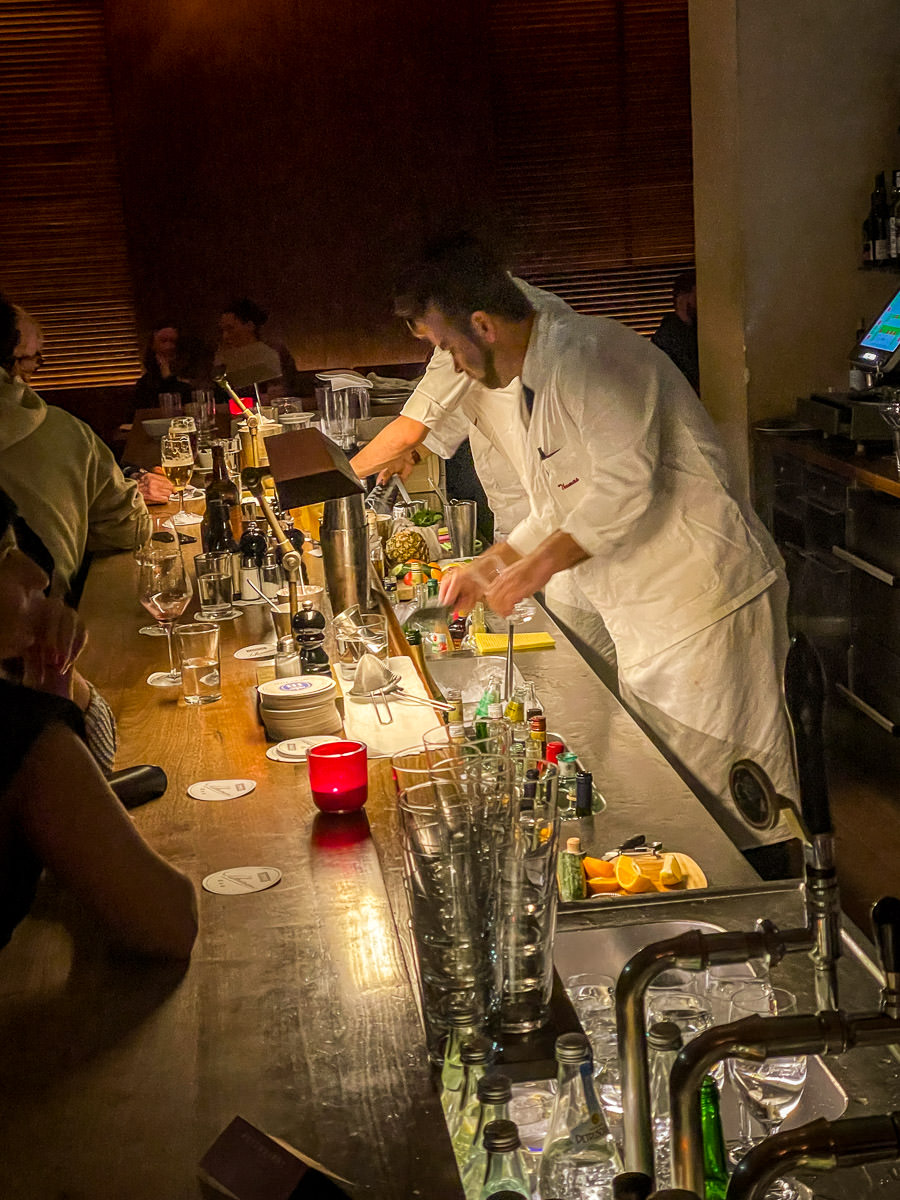 Standing in front of a large wooden bowl at a long island in the center of the room with his back to me, he mixed together All The Things, using his special alchemy and flourish. Delicate sprinkles, precise grinds and Just-Sos that only he was privy to. It was like watching an orchestra conductor, back to me, hands, arms and elbows all moving with precisionFunny, like a restaurant running a fajita sizzle plate through the dining room, soon all the new tables ordered the tartare. Each time, a different guest conductor would come out to quietly perform the same quiet ballet, back turned to the audience. This wasn’t a Schnitzel-Schnitzel place, this was Tartare Heaven.
