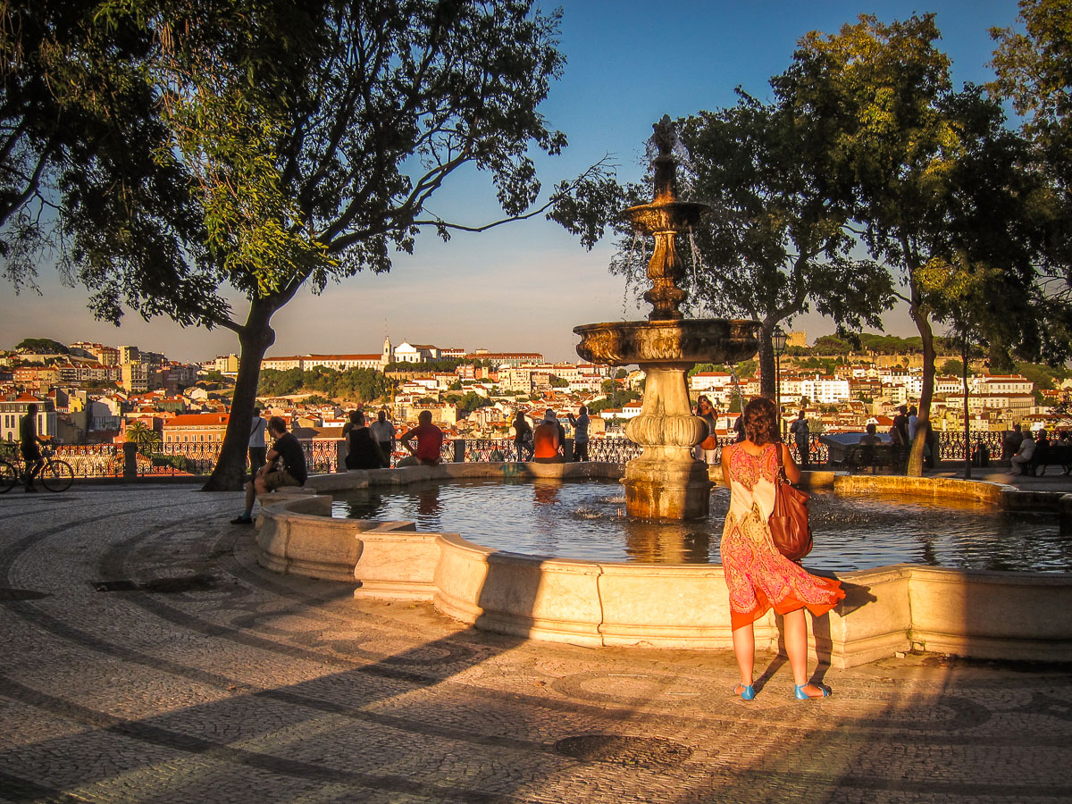At the edge of Bairrio Alto, high above the city, the street ends at a perfect little park, Miradouro de São Pedro de Alcântara, the best overlook of the city, the castle and the rooftops of Alfama.