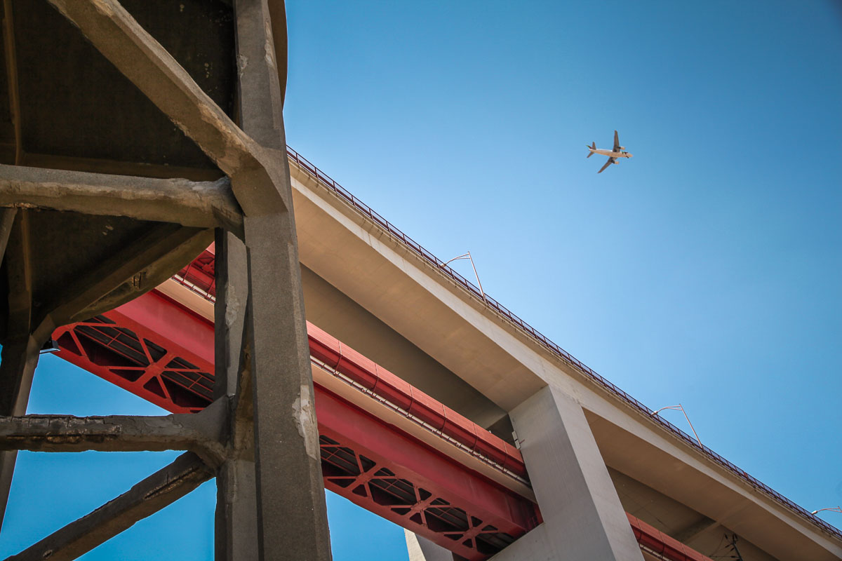 There’s even a bridge that’s nearly identical to the Golden Gate Bridge, spanning the river, with boats and ships chugging below it.