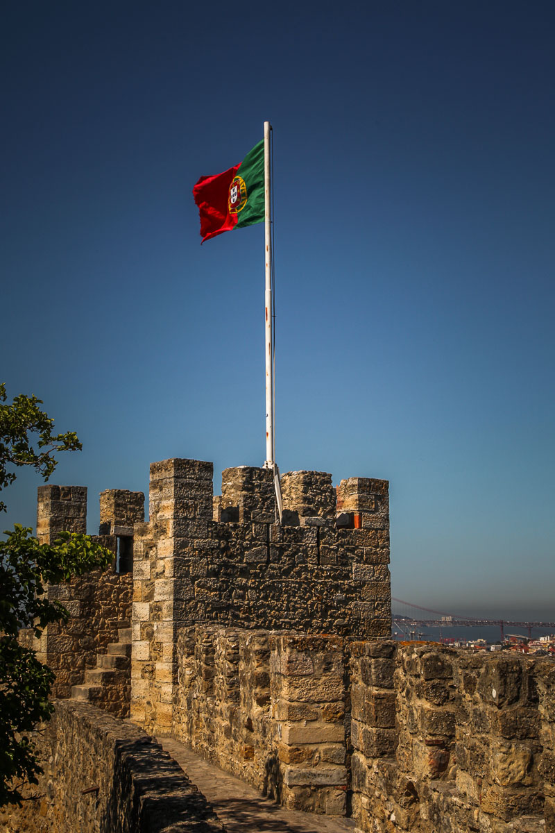 Castelo de São Jorge is one of my favorite spots in the city. And you can see it from almost any angle across the city. Some of its current fortifications date back to Roman times, 1st Century BCE, but there are signs of forts here going back to the 8th Century BC. People have been bombarding people below from this hill for eons, occupied successively by Phoenicians, Greeks, Carthaginians, Romans, and Moors, until it was finally conquered by the Portuguese in the 1147 Siege of Lisbon.