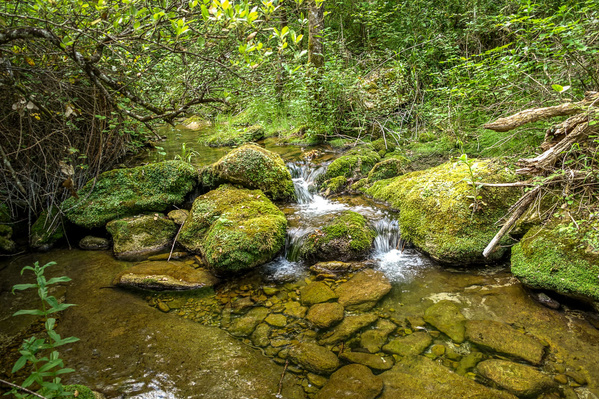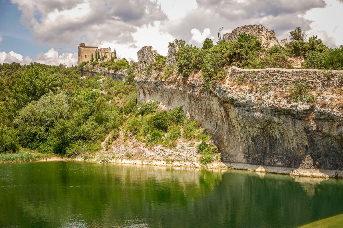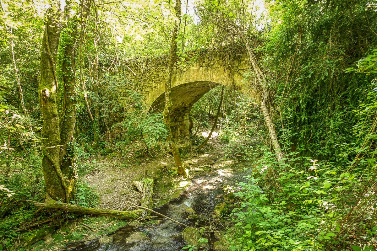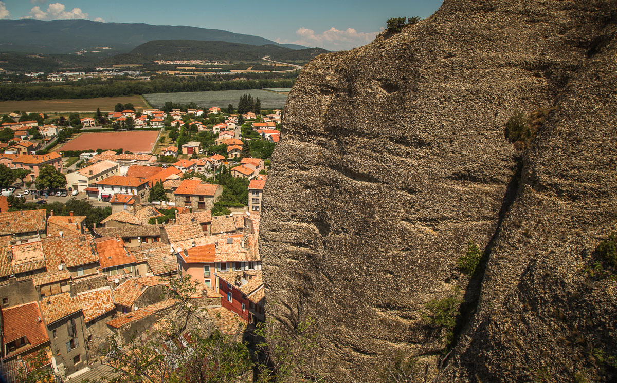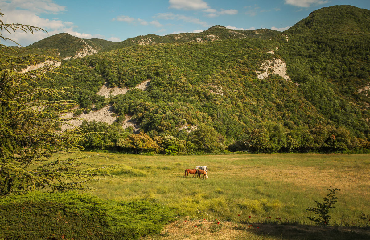 This all used to be underwater. Millions of years ago. Then it was thrust up to form the Luberon massif. The Aiguebrun river, which is more like a brook these days, has cut a course through the limestone on its way to Lourmarin and the Durance river to the south and onto the Rhone. Cliffs rise 300ft on all sides, with small scramble trails scattered in the leaf-shaded valley. Great for a cool running-around when the valley is too hot in the summer.