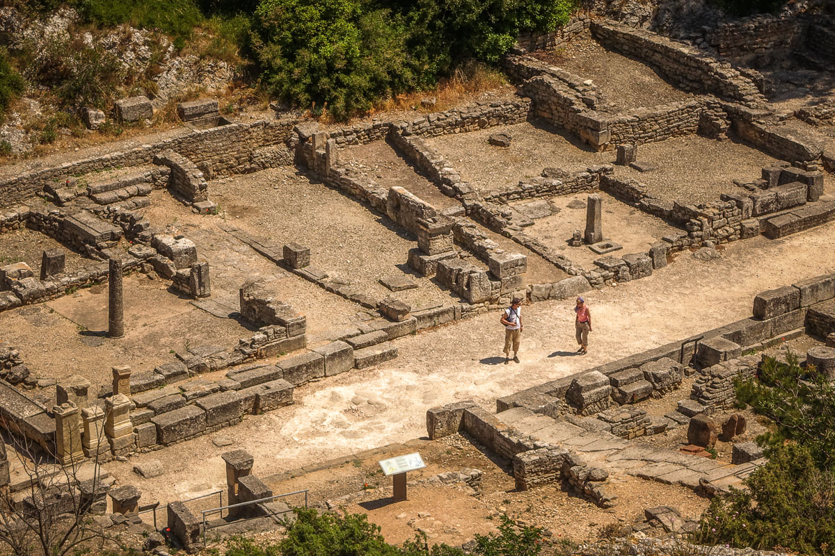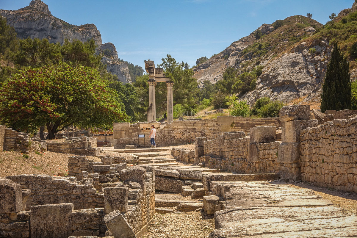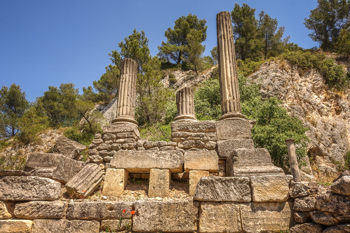 Allow me to geek out on my Roman fixation here a little bit. I mean, where else can you walk right through 2000 year old Roman ruins, not be behind a protective rope barrier? All this 2500+ year old greatness, a whole Roman town, right out in the open, tucked into the gentle hills of the Alpilles. Where you can wander in and out of buildings and temples. Pose under the Corinthian columns, or look out over the old town like an emperor. This actually started out as a Celt temple village, then a Greek outpost, then Roman.