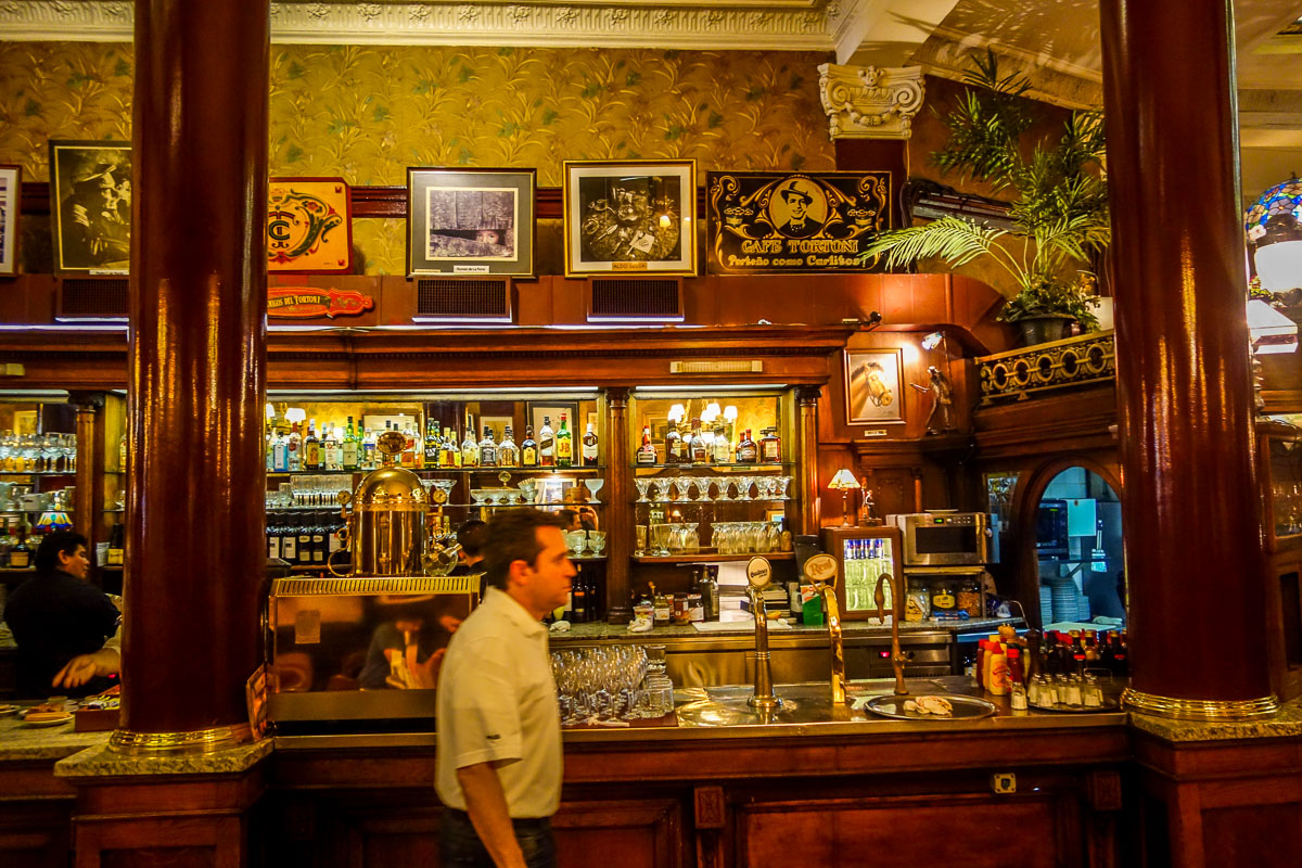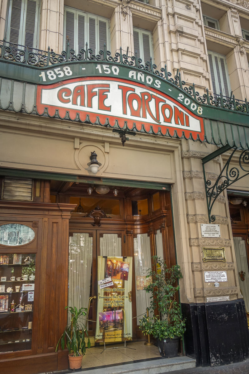 Cafe Tortoni has been in operation since 1858 in a gorgeous soaring room, with tuxedo-wearing waiters, tango music and hundreds of tables. Is it touristy? Yes. Is it authentic? SĆ. You’ll see tourists in shorts and t-shirts and old ladies dressed to the nines, sipping on their cortaditos.