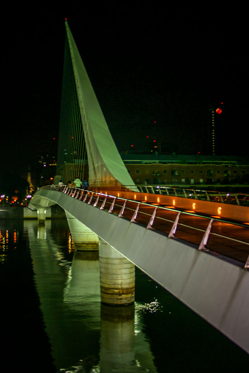 My favorite part about Puerto Madero is how they embrace the industrial past, way ahead of its time when they renovated it. Instead of tearing down the dock cranes, they dramatically lit them. Turning each crane into a work of art. Check it out at night, when it is most dramatic.