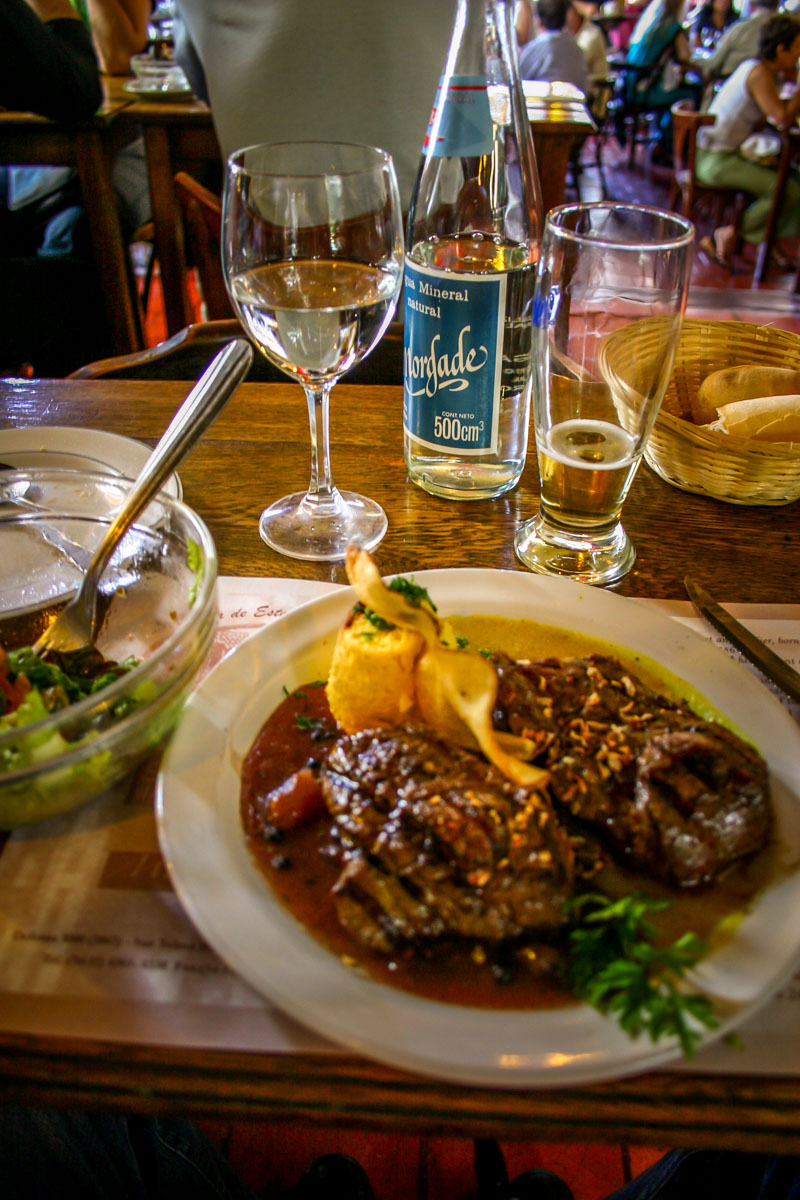 I had the best seat in the house to drink it all in. Sumptuous deep blood red curtains and a leather-colored stucco walls. A golden glow from the sun streaming in and the vintage light fixtures. My favorite: the Buenos Aires-perfect faded black and white tiles. This restaurant has been open for decades but still feels so fresh and perfect. I wish my house looked exactly like this. It’s more priced for foreigners than locals, but still a fantastic experience.