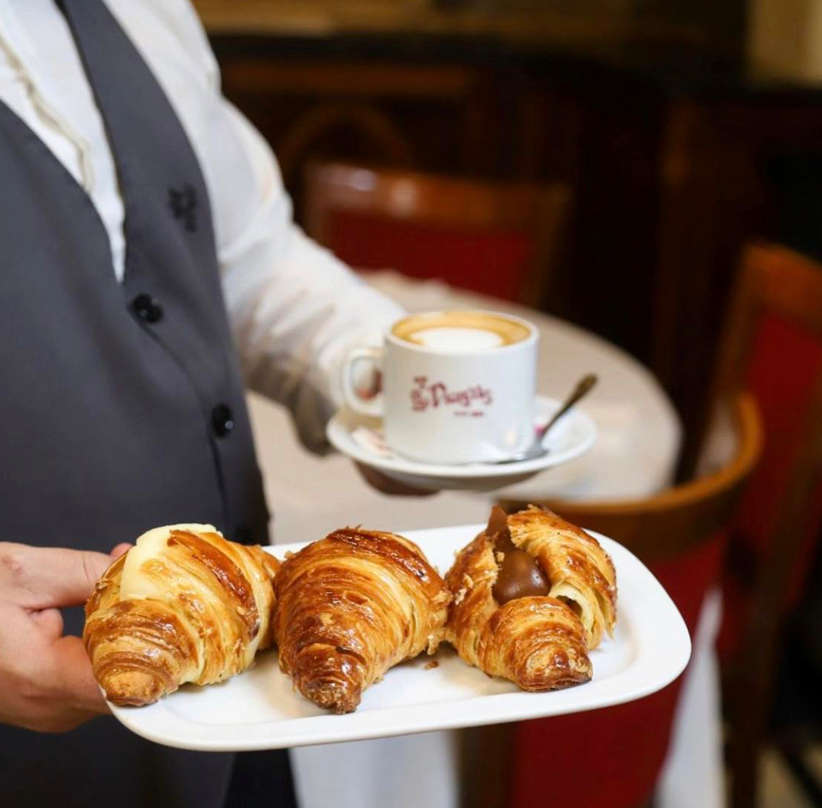 PorteƱos love a good cafe. A strong coffee and a medialuna 🥐 which is like a croissant, but tender-soft and buttery, not as flaky. They melt in your mouth. There are cafes and bakeries on every corner, some functional, some modern but seek out the classic institutions like Cafe Tortoni or Cafe Las Violetas for the best history lesson.