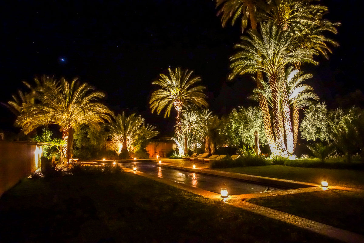 Morocco is mind-blowing by day, but nighttime is when Dar Ahlam really brings the magic out. At dusk a sweet candlelighter moves from lantern to lantern, glowing under the purple blue dusk sky, your private table set in a different spot every night.